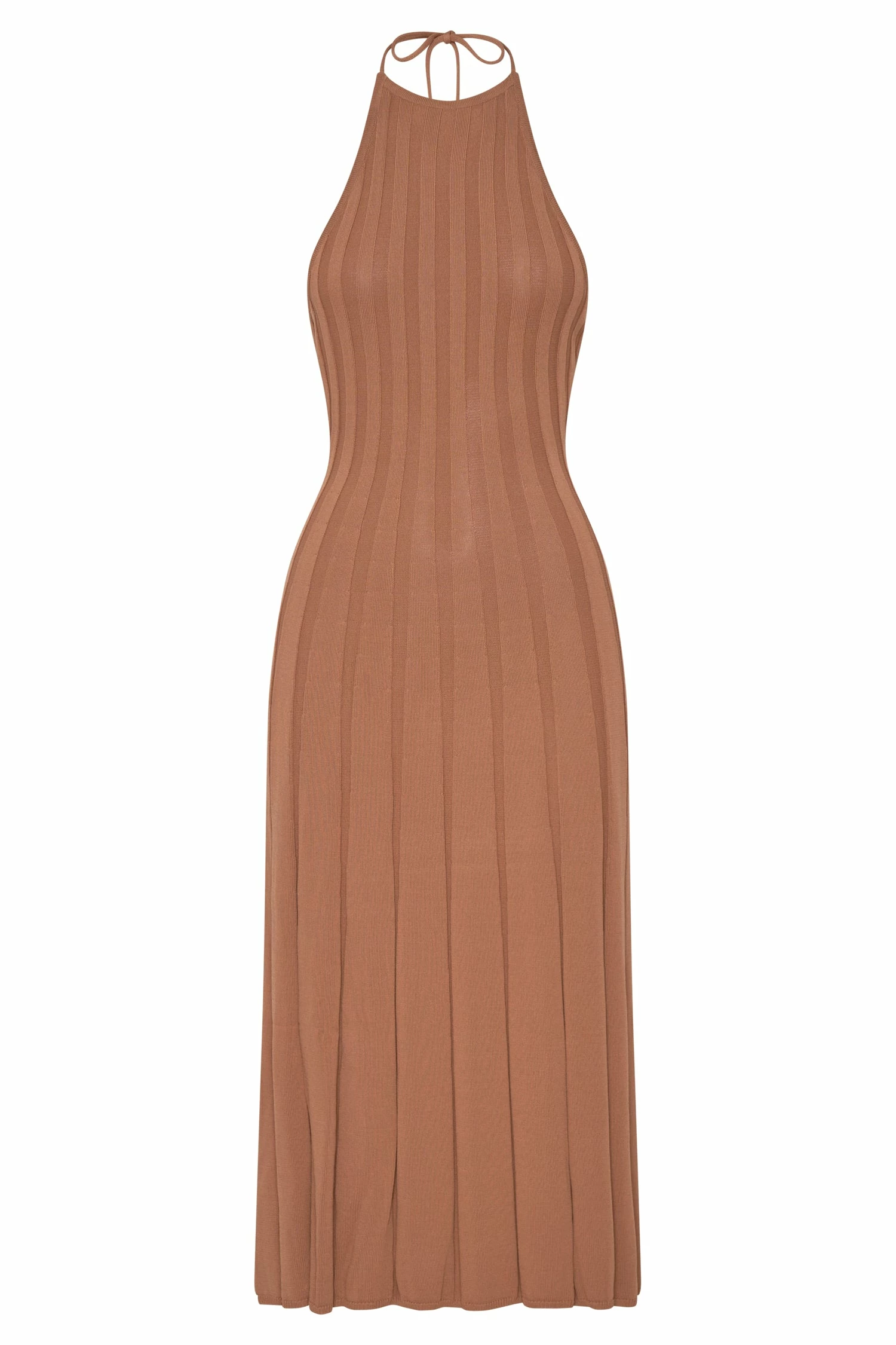 Exude elegance in ADRIENNE. Crafted from a beautiful knit, she drapes effortlessly over the body and is balanced by a halter neckline and open back. In a straight cut silhouette, Adrienne is fitted at the waist and will captivate from all angles. Taking you seamlessly from a long lunch to sundown cocktails, pair with gold jewellery for a polished look.