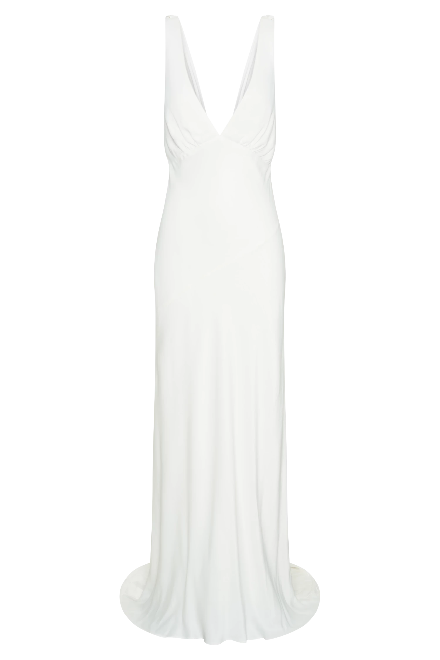 The AMANZA Maxi Dress with Cowl Backs timeless silhouette invokes classic glamour. It has been designed with a V front and extra low V back cowl neckline. The fixed shoulder straps are lined from the same fabric as the dress, giving an uninterrupted visual aesthetic from top to bottom, while its side seam invisible zip closure and maxi length complete its simple yet out-of-this-world beauty. Pair with our Margareta Veil to complete the look.