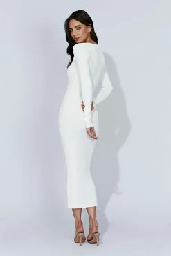 Meet ANNA. Cut to perfection in a luxurious tape yarn knit, she is designed to be the main attraction and loves a special occasion. Featuring a waist cut-out with gold hardware, statement flare sleeves and a thigh-high split, Anna exudes confidence with every wear. Style with statement accessories and gold jewellery to leave a memorable impression.