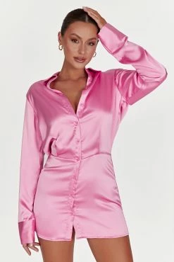 The BRIELLE Satin Shirt Dress means business from the very first look. Designed for day-to-night dressing in mind, we made this mini length but with a satin shirt dress that features a button-up collar and full sleeves to balance the look. Lined with satin, Brielle is as comfortable as it is stylish, making it your new favourite everyday go-to. The button-down front and cinched waist will give you that perfect fit, while a hemline that hits just above the knee makes it easy to pair with heels for a night out.