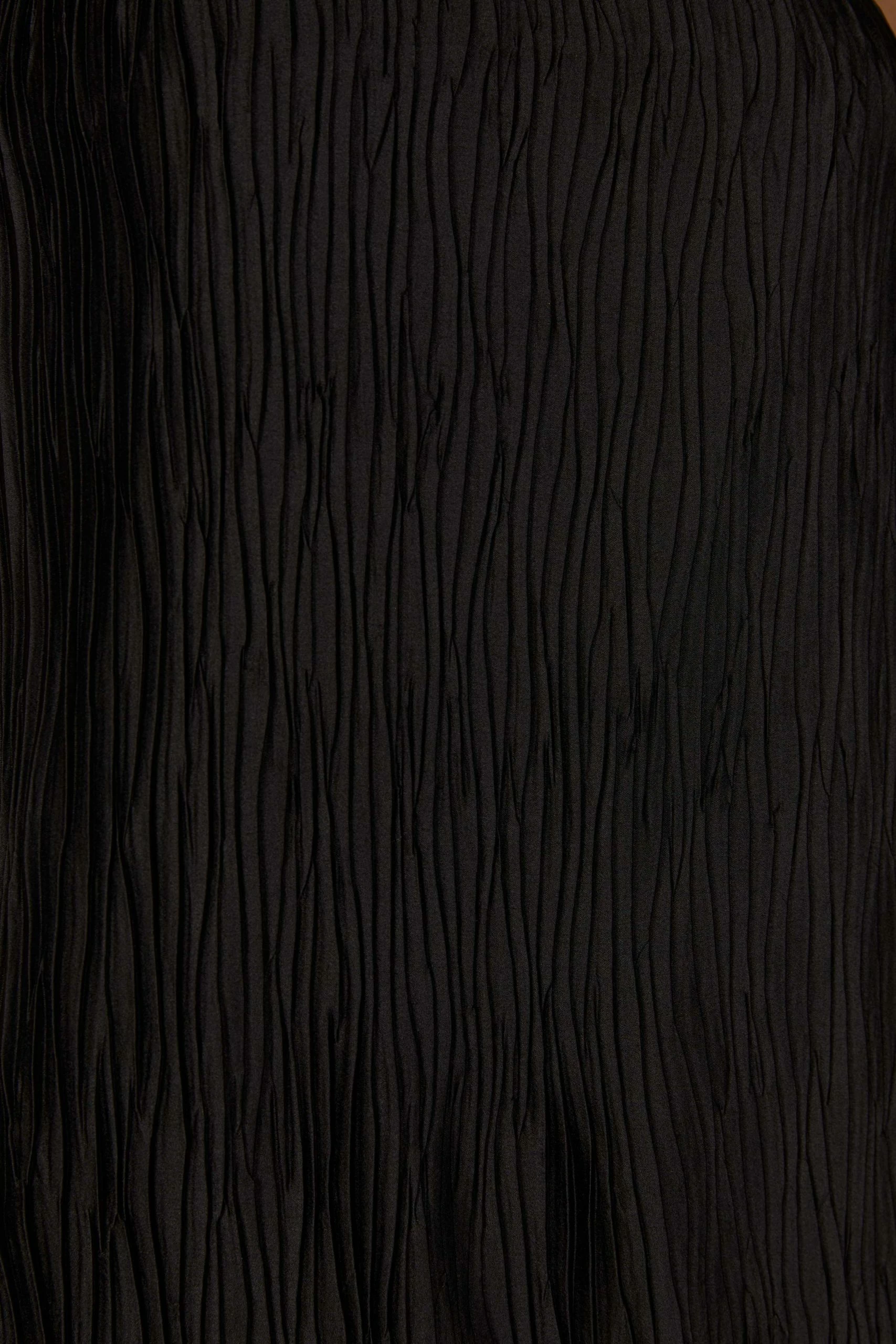 ATHENA is a strapless, shift mini dress with a low scooped neckline at the back and a raw hem. It has been crafted to have a simple, almost shapeless silhouette, with added texture and depth thanks to the the plisse fabric. The back also has an elastic strap running horizontally atop the neckline to create a cut-out effect. The straight, relaxed cut is complemented by the crinkled texture and baby overlocked hem finish. Made of, and lined with, our soft MESHKI blend fabrication, you’re sure to feel like a casual, modern-day goddess. Pair with our Neve Wrap Around Faux Leather Heels to complete the look.Â