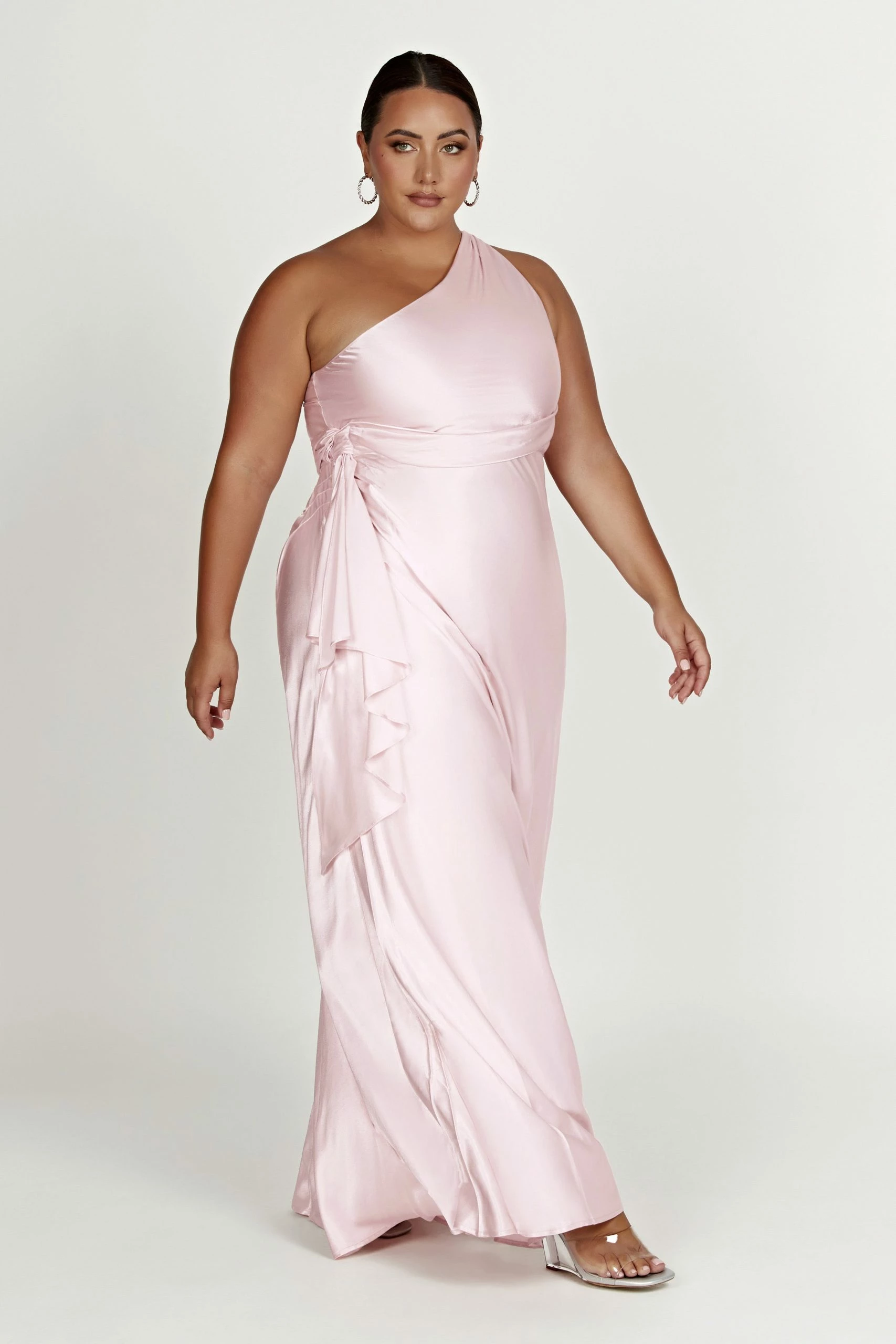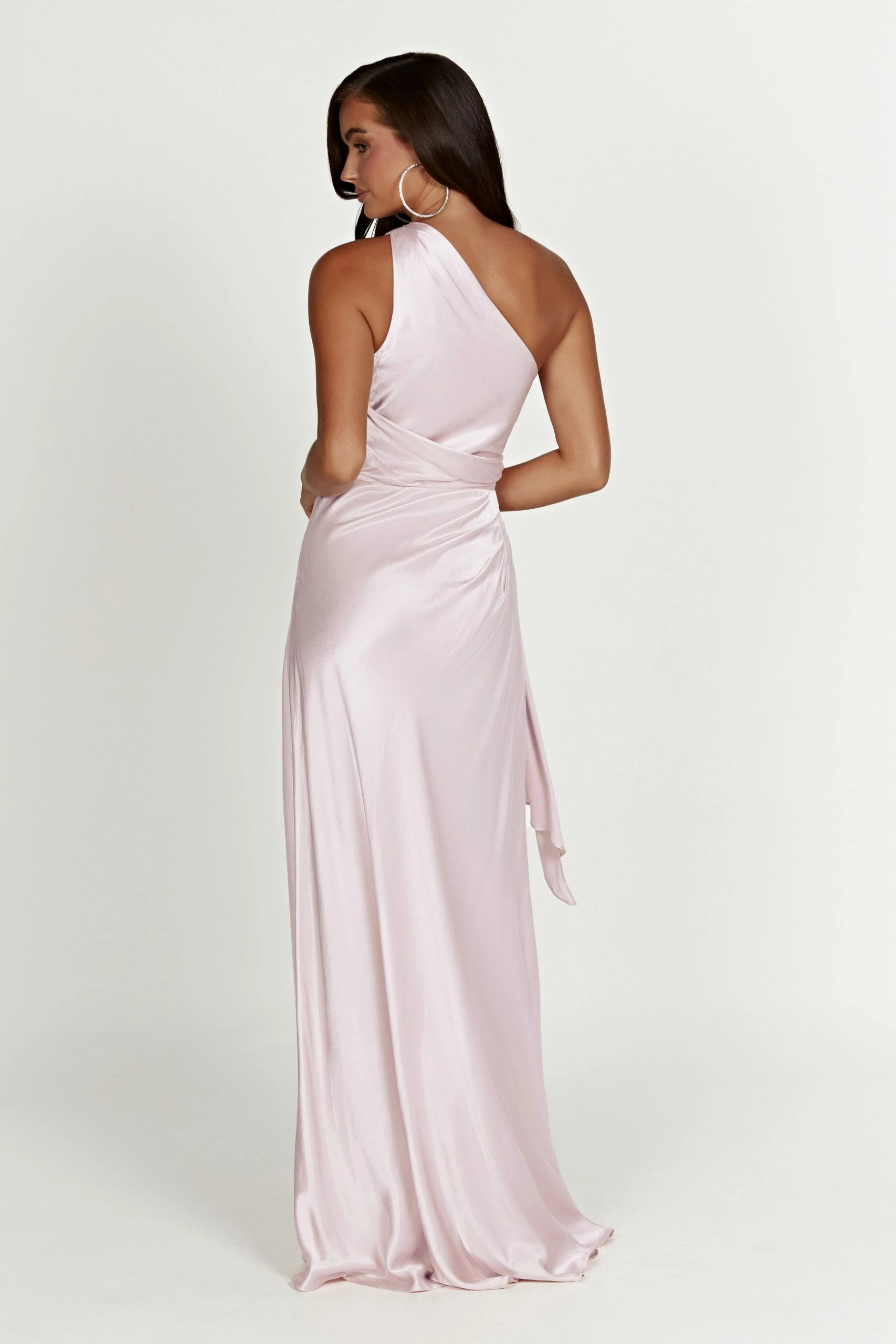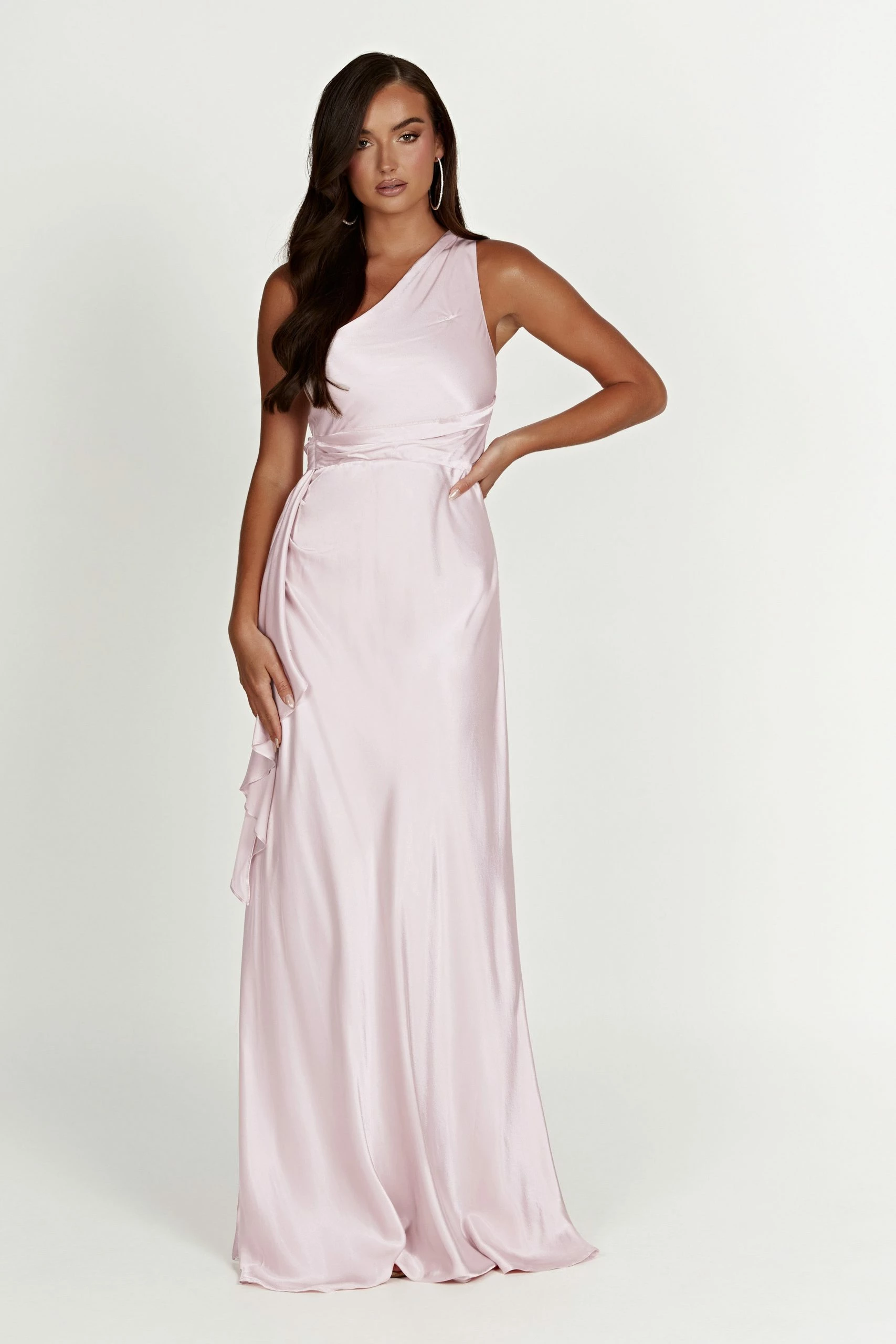 The CALLIOPE One Shoulder Maxi Dress creates the perfect feminine silhouette for bridesmaids or brides looking to shy from tradition. Featuring a one shoulder look and crafted with a waterfall panel draped at waist, it also boasts a hook-and-eye closure at the top of the zipper of the dress to fit your form. Style with minimal accessories for a look to remember.