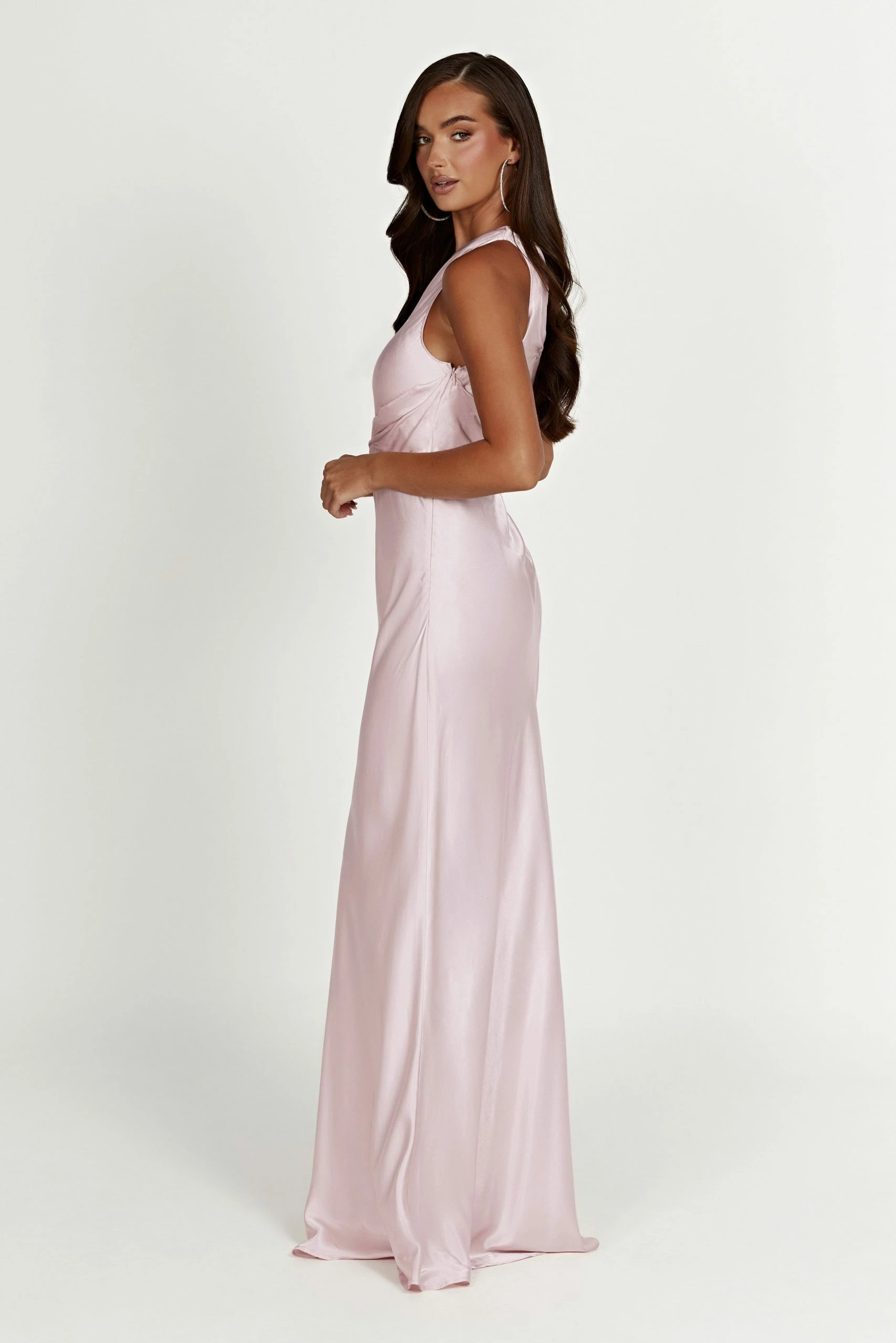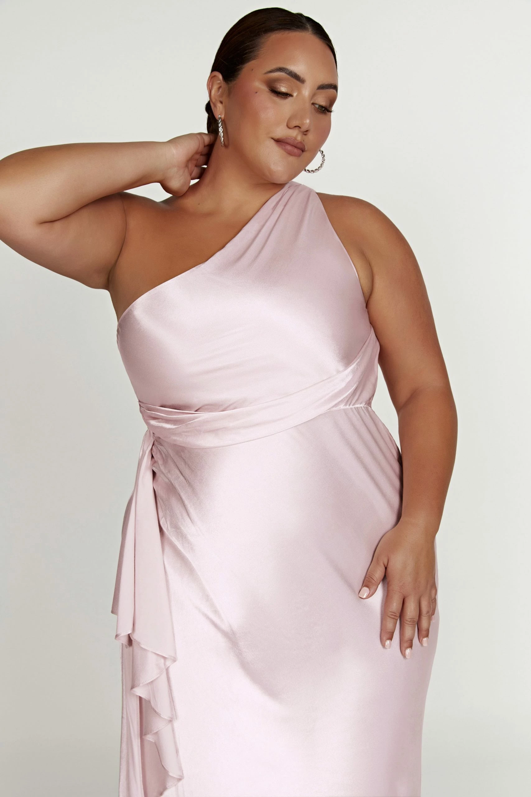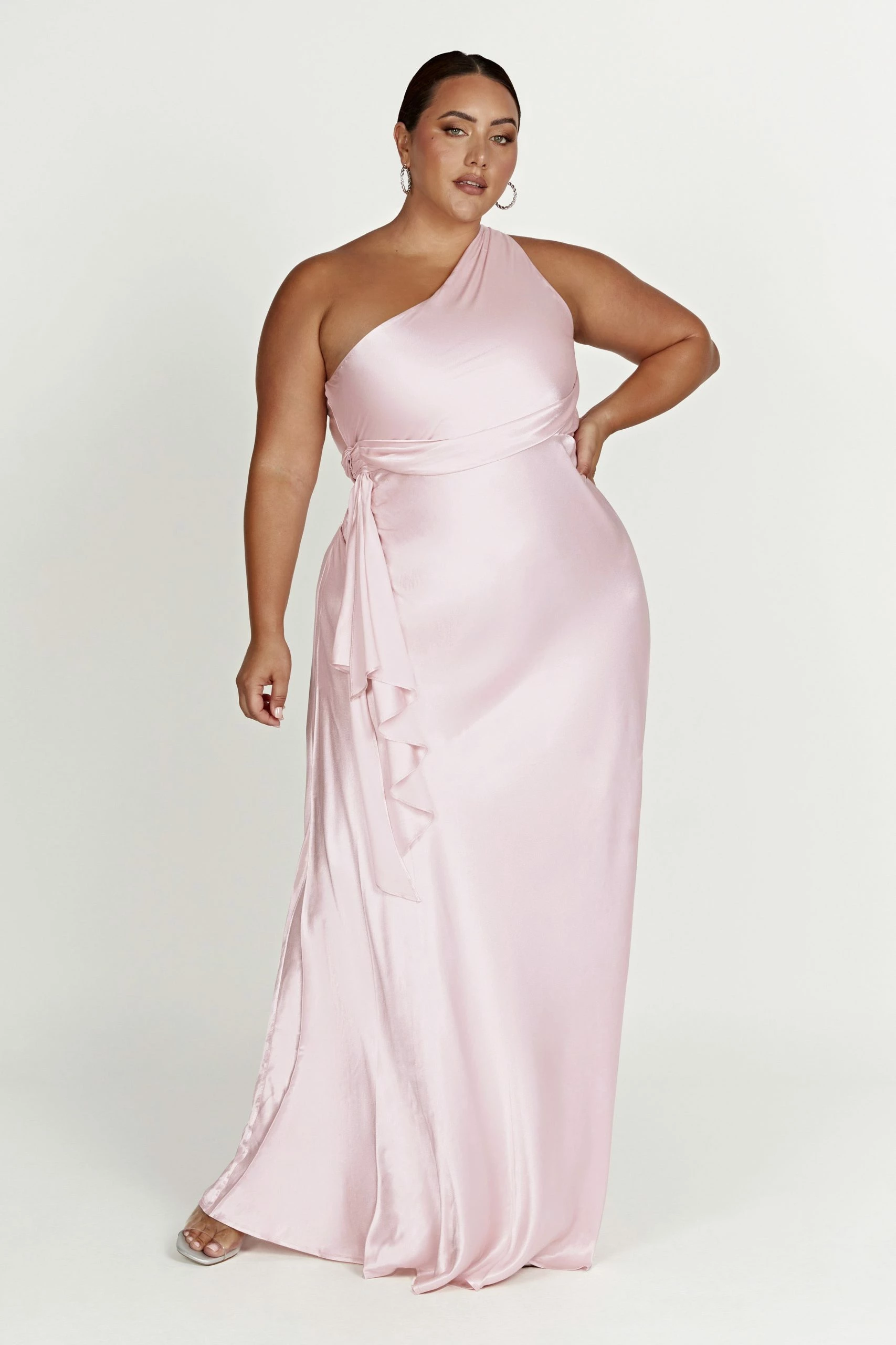 The CALLIOPE One Shoulder Maxi Dress creates the perfect feminine silhouette for bridesmaids or brides looking to shy from tradition. Featuring a one shoulder look and crafted with a waterfall panel draped at waist, it also boasts a hook-and-eye closure at the top of the zipper of the dress to fit your form. Style with minimal accessories for a look to remember.