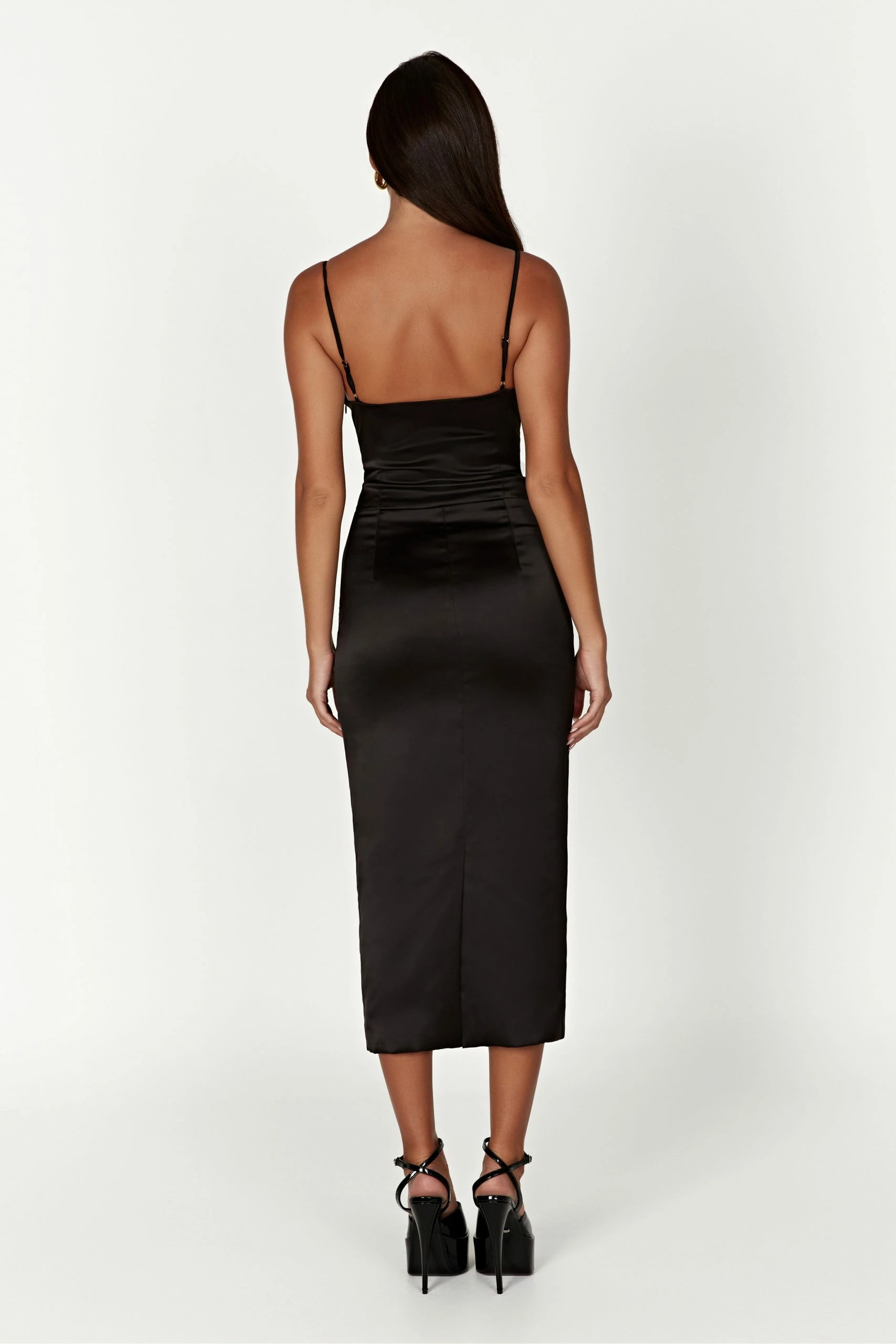 This structured corset midi dress is made from our soft and luxurious satin fabric that embraces every curve. It features a smooth lining and sweetheart bustier neckline for support, with adjustable straps, a drawstring waistline and centre-back split for easy wear. Romantic and cinematic, pair with your favourite heels for an iconic look.