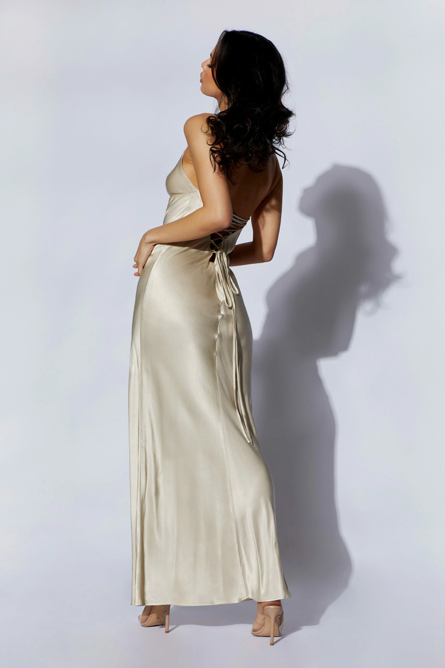 CORA is dependable but that doesn’t mean she’s not utterly magnetic. She blooms on her own, neither demanding attention nor pushing it away. For those who do notice her, she exudes natural magnetism and appeal. Made out of a soft, flexible rayon and viscose fabric blend, she swishes and sways with movement. Her back is decorated – and secured – with lace-up fabric ribbon and slender shoulder straps. Her front is a simple deep V-neck cut with a single strap through the middle. As your wingwoman, your soul sister, your confidante, Cora radiates the quiet, steadfast assurance you need — no matter where you are and what situation you’re in.Â