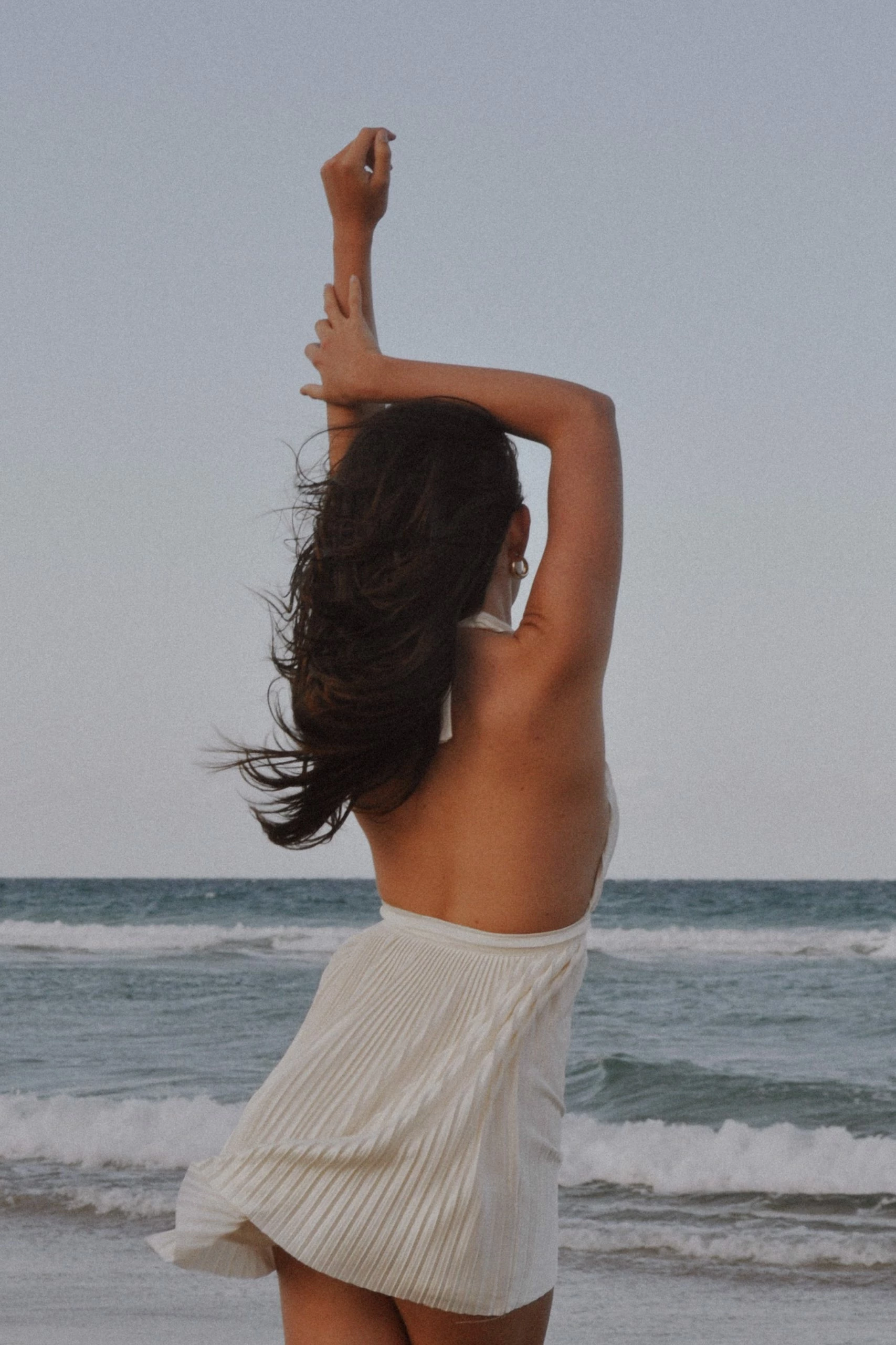 She’s arrived. Make way for DARYA, the pleated mini dress of our dreams. She’s a playful take on our Fareeba Maxi Dress and she dazzles in our iridescent satin-like fabric, spins on cue thanks to our soft unlined hem but feels totally secure in herself, thanks to her fully-lined and dramatic halter ties that shows of your shoulders in all the right ways. Wear her with a smile and our Neve Wrap Around Faux Leather Heels to complete the look and set everyone’s faces to stun.