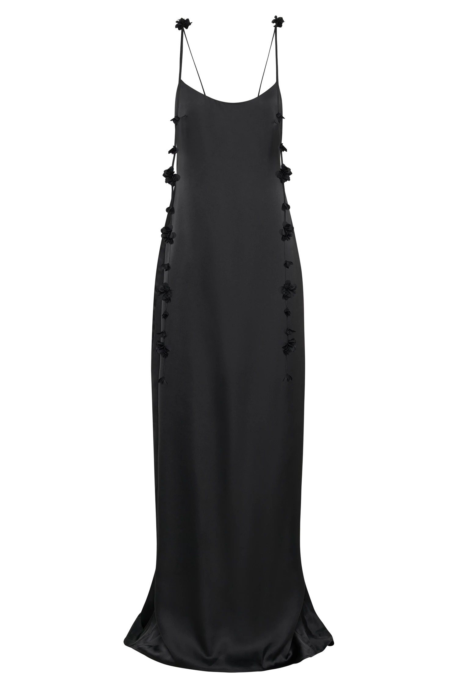 The ELENORA Rose Gown has been designed for sophisticated, timeless brides looking for a classic style. Crafted from a luxurious satin fabrication, this maxi dress highlights a 3D floral-detailed shoulder strap, that adds drama along the backline whilst the back train keeps this style true to its timeless elegance. Keep the accessories minimal to let your dress do the talking.