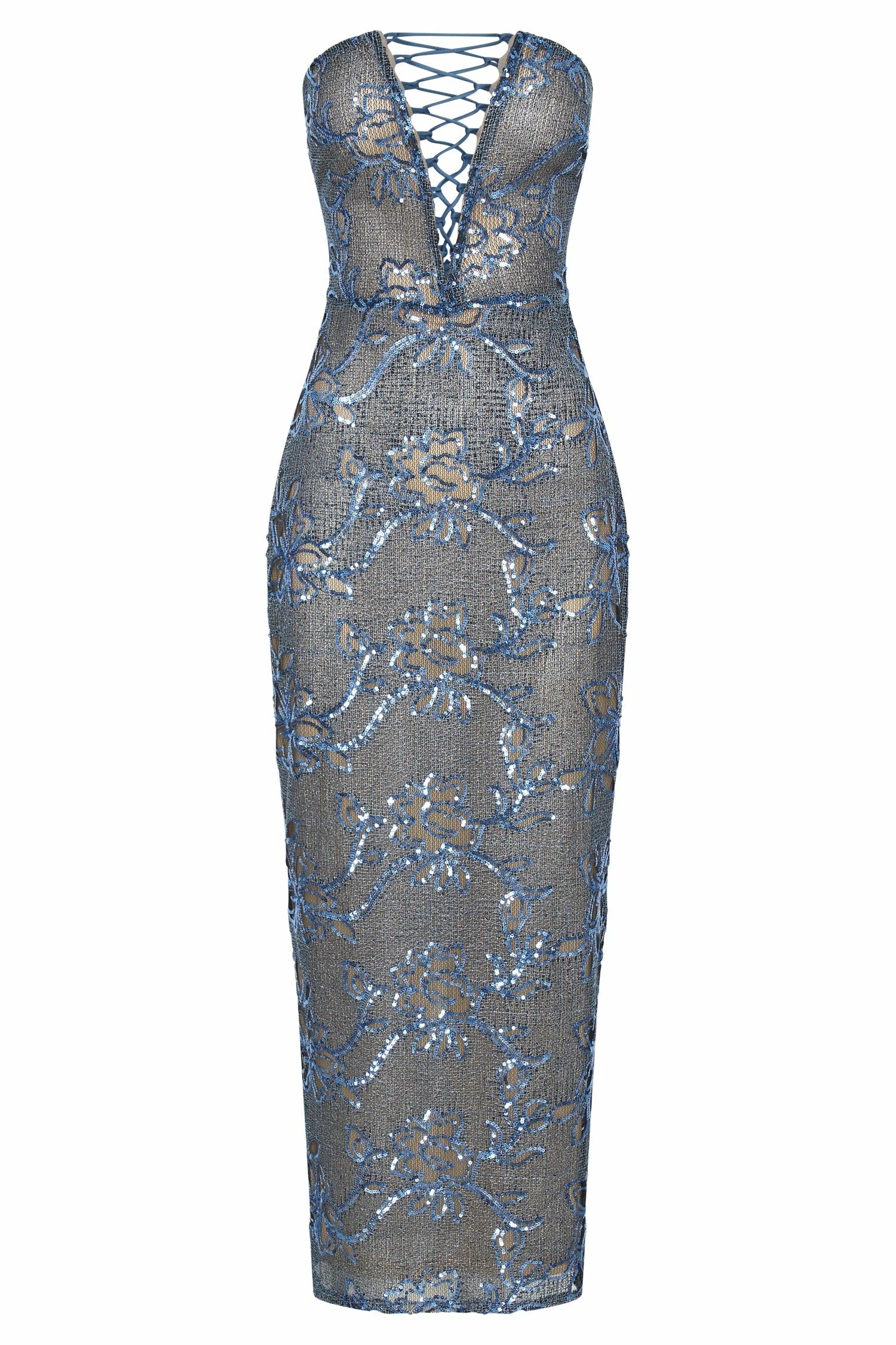 HARRIET glitters and glows with delicate eye-catching floral designs sewn into her low-v cut, floor-skimming fit. She’s a showstopper and a moment maker. Featuring a fully-lined V wire front neckline and an adjustable lace back, Harriet also has a thoughtfully placed side seam invisible zipper for a smooth-wearing effect so all eyes are on the details. Wear with confidence, our Caitlin Diamante Rope Heels and have the night of your life.