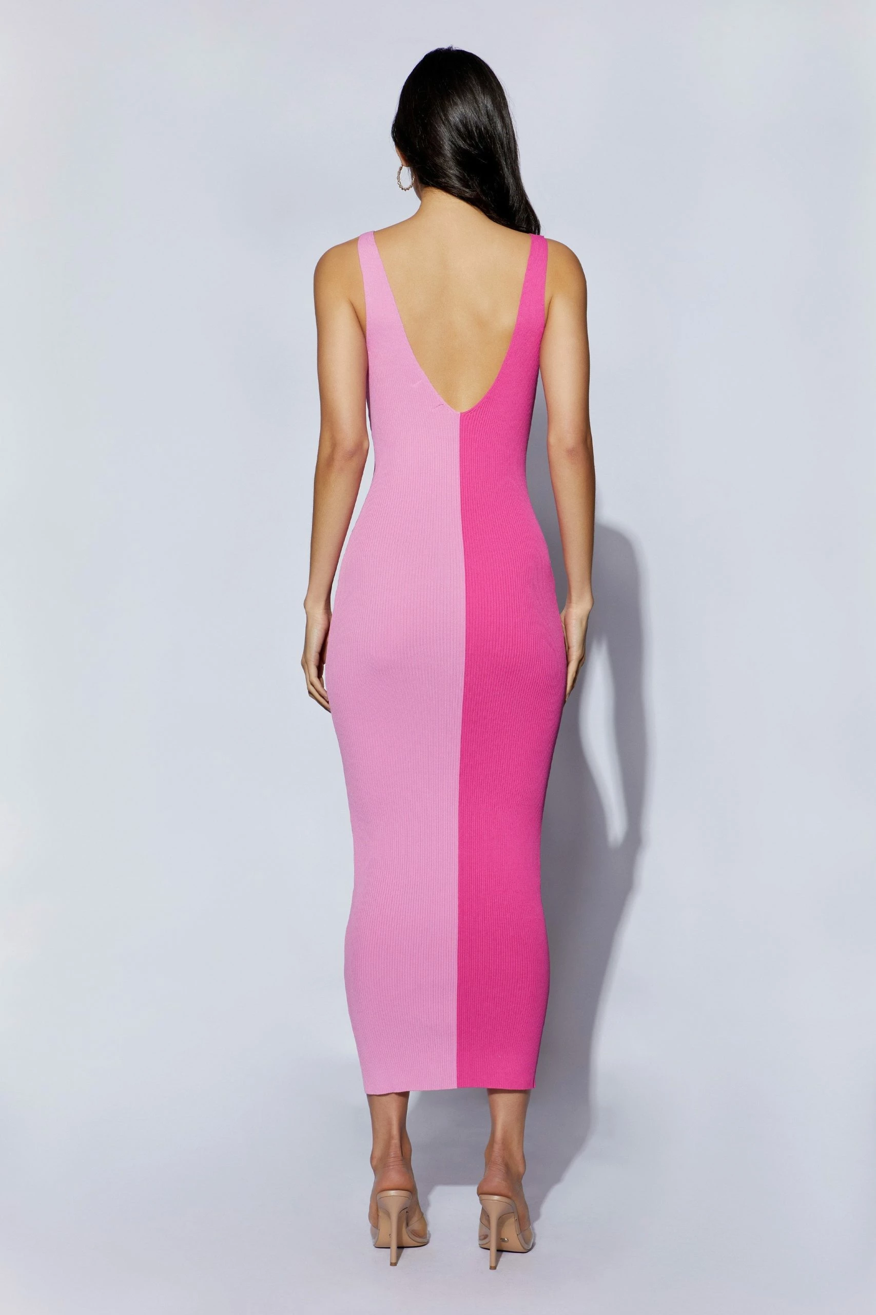Equal parts effortless and sophisticated, the JODIE Two Tone V Neck Midi Dress has been designed to leave memorable impressions. Showcasing a form-fitting silhouette, Jodie is cut from a ribbed knit fabrication in a dual tone design and features a plunge V front and back neckline. She’s perfect for intimate dinner dates or sundown cocktails with the girls.