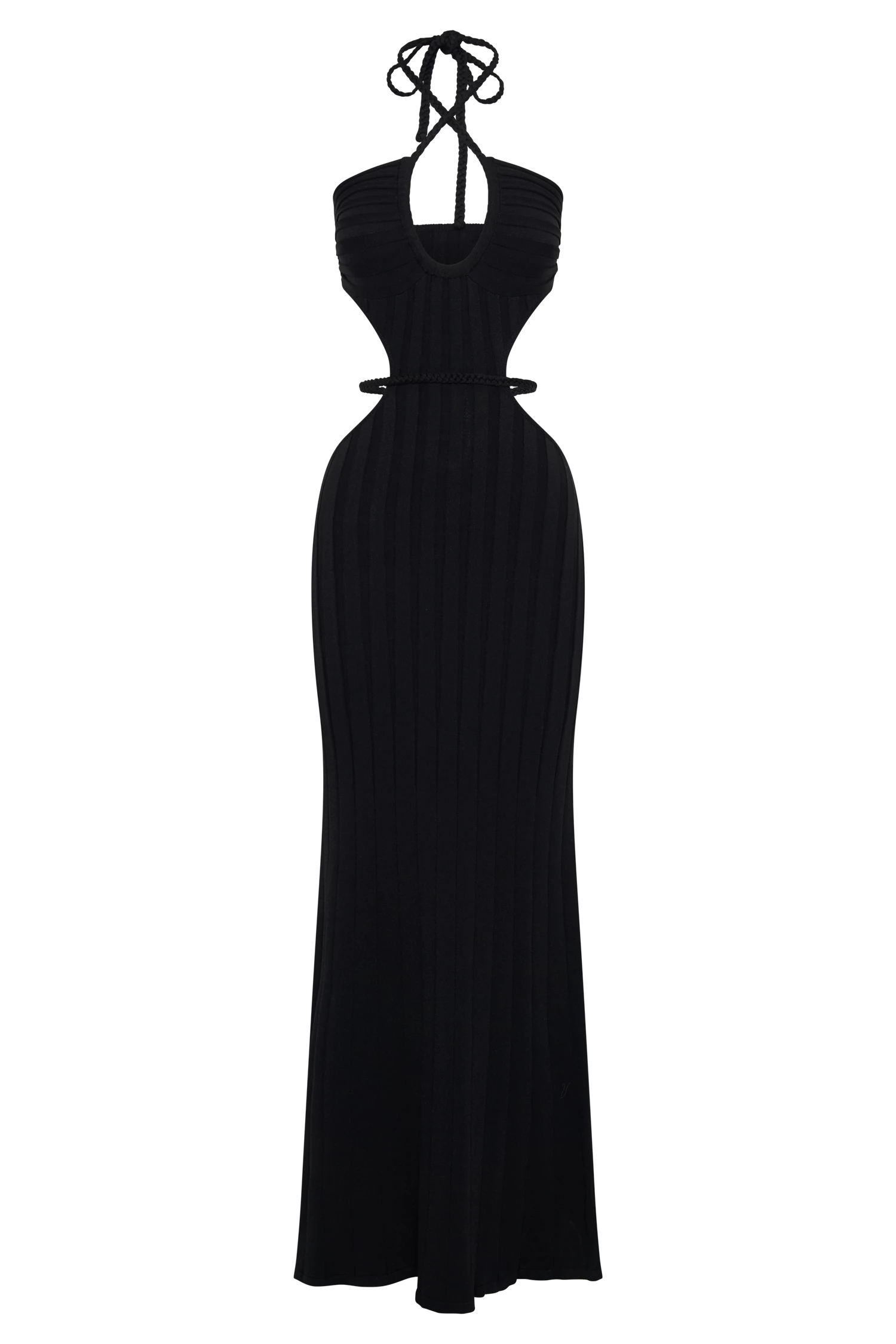 MINERVA is a ribbed knit maxi dress cut from a custom fabric blend of viscose and polyamide for optimal comfort and stretchiness. Long, flowy, and curve-hugging, it features a unique, multiway, self-tie neckline with functional straps, allowing you to wear it either as a crossover or as a halter. The side-waist cut-outs also have self-tie fabric plaited ties that you can wraparound your waist for an extra cinching effect. The loose skirt with the fishtail hem shape complements the dress’s fitted torso. Definitely best worn with goddess barely-there heels.