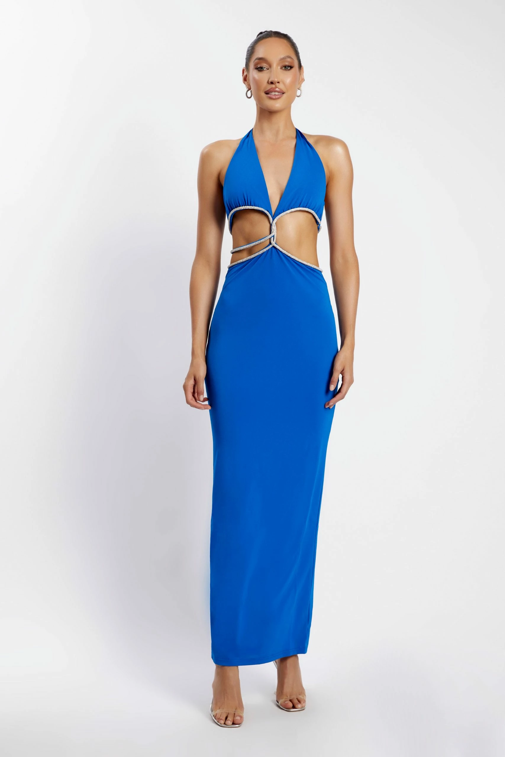 The NICHA Diamante Cut Out Midi Dress is the epitome of evening elegance. Fitted in its form, Nicha features a flattering plunge neckline and architectural waist cut-outs – complete with a finishing touch of diamantes to take your look to the next level. She offers a centre-back split for unrestricted movement and is fully lined for comfort. Complete the look with a sleek bun and minimal accessories for your next glam function.