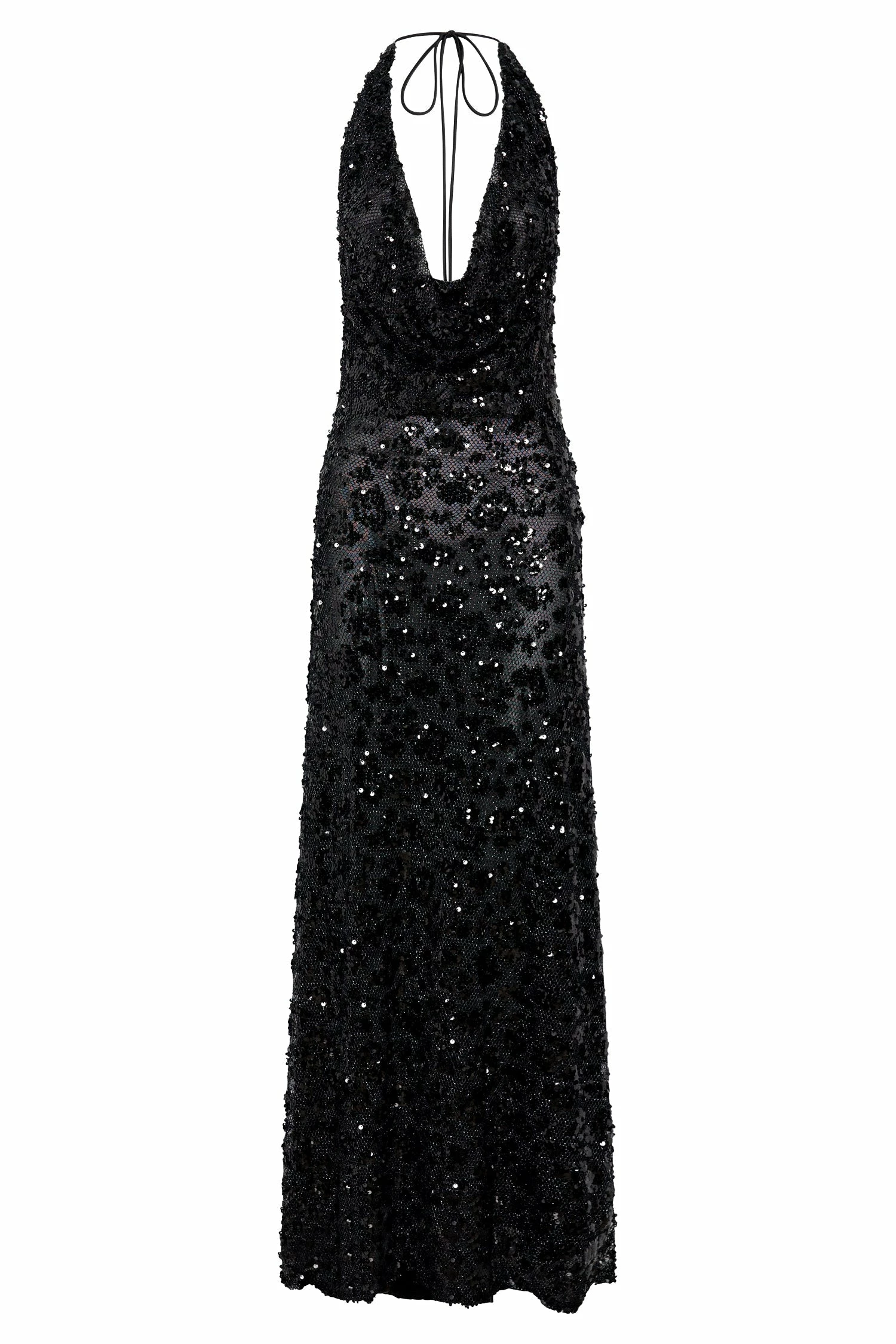 The ultimate all-eyes-on-you gown has arrived. Meet the NICOLA Plunge Neck Sequin Maxi Dress, a show-stopping event gown that’s full of sparkle and a little drama (the good kind). Featuring sequin embellishments, a self-tie fastening, and halter plunge neckline with a cowl drape, Nicola is one to remember. The figure-hugging silhouette has been designed to be super flattering so all you need to worry about is having the best time.Â