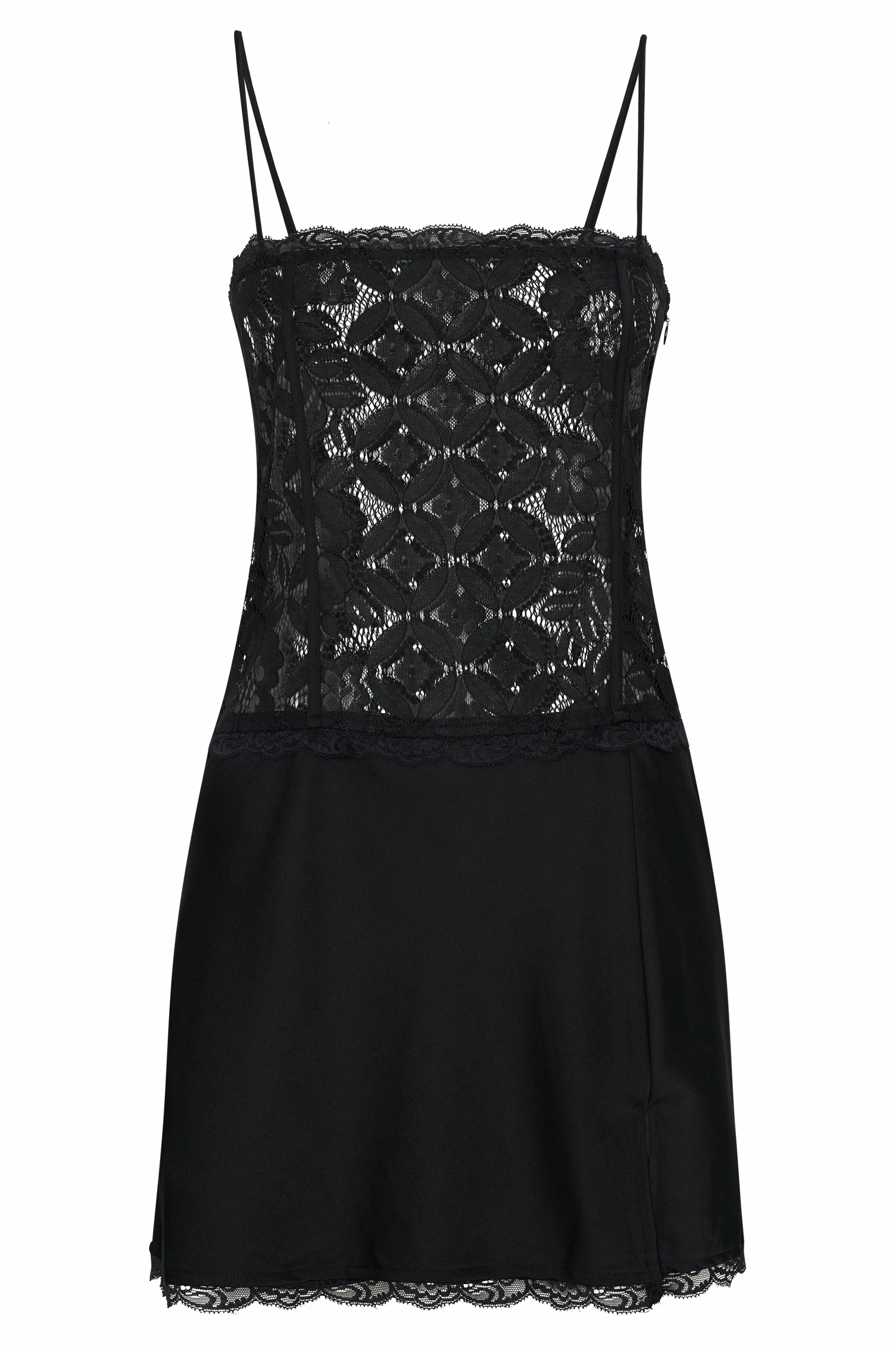 - Lace-trimmed hem