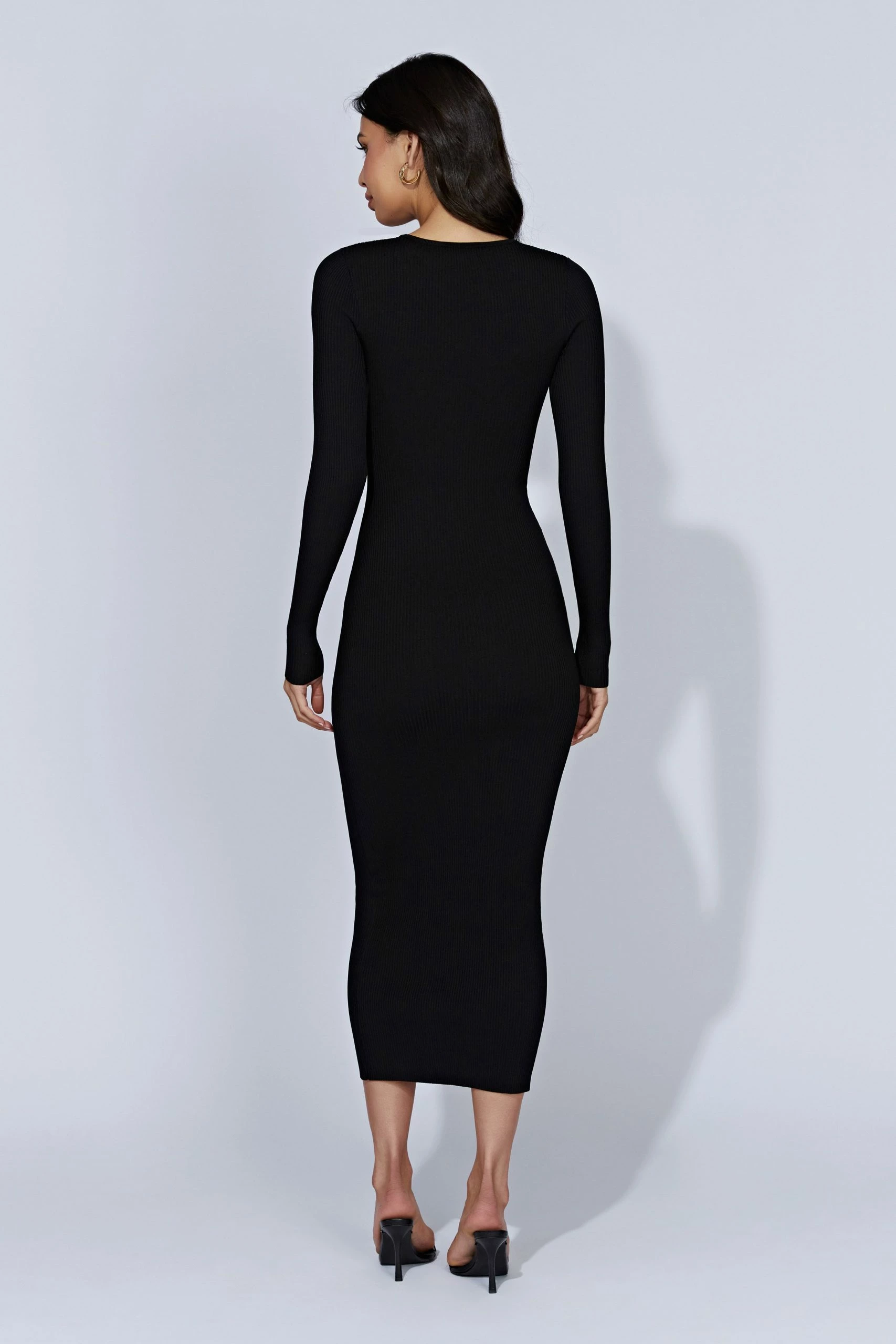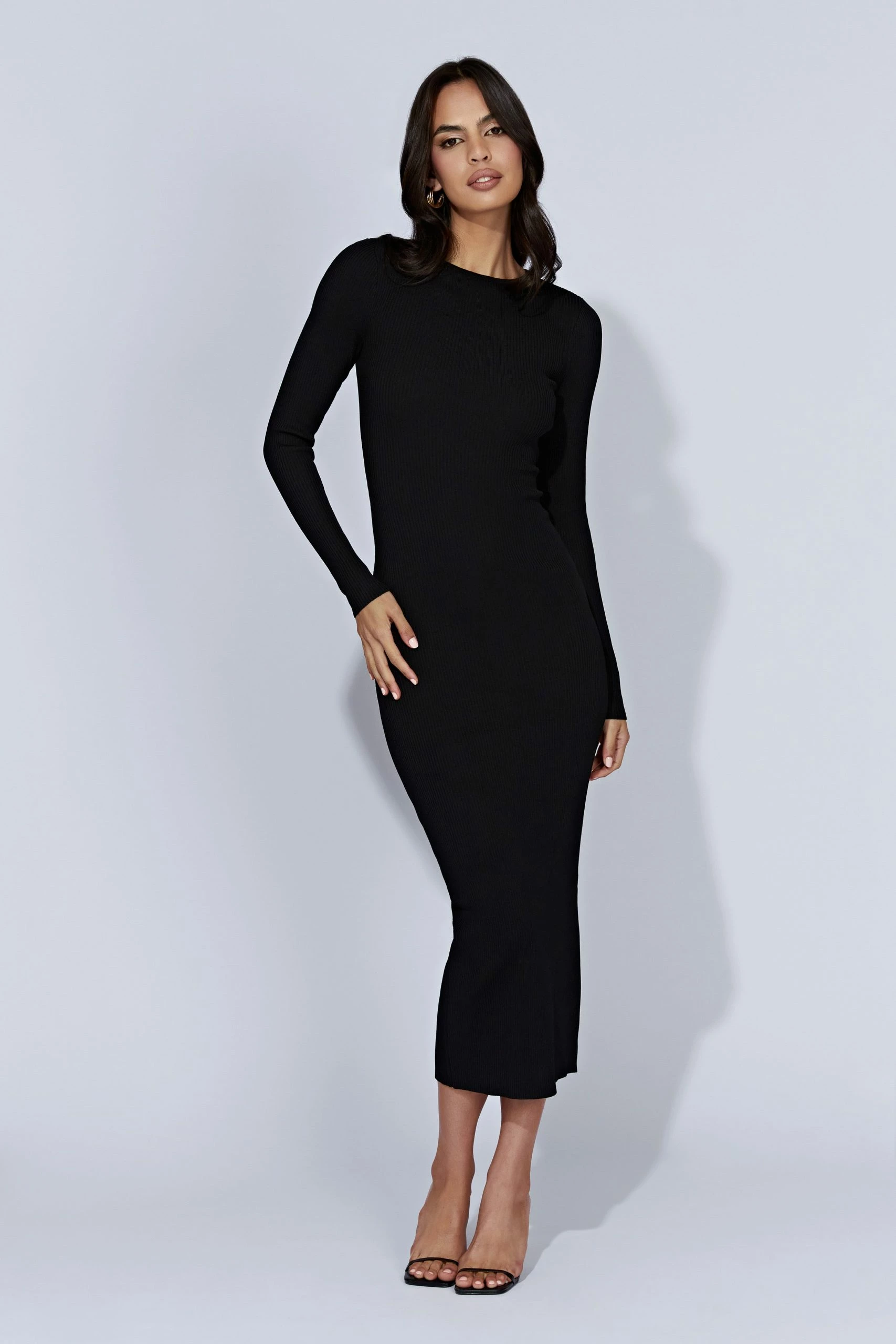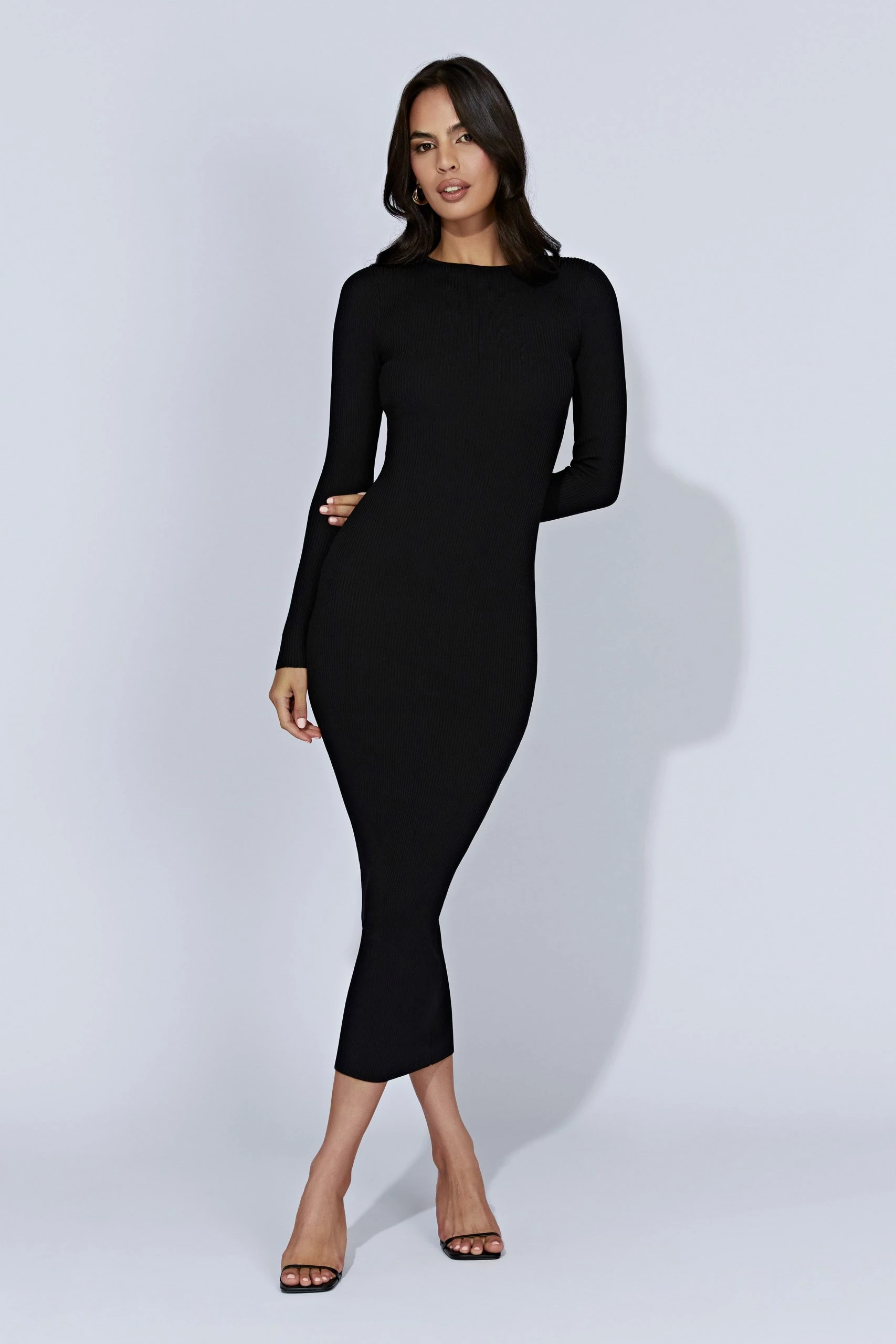 She’s elegant and refined but don’t think for a minute she’s shy about her looks, ROWEN is a gorgeous number with long, fitted sleeves, a comfy knit ribbed knit texture, and a clean, raw hem. She’s fairly full coverage in terms of skin, but she’s more than happy to show off your body’s lines and curves. A total confidence booster in soft fabric, Rowen is a must-have for your party and date nights! For shoes, she’d go well with our classic Brandy Ankle Strap Heels.