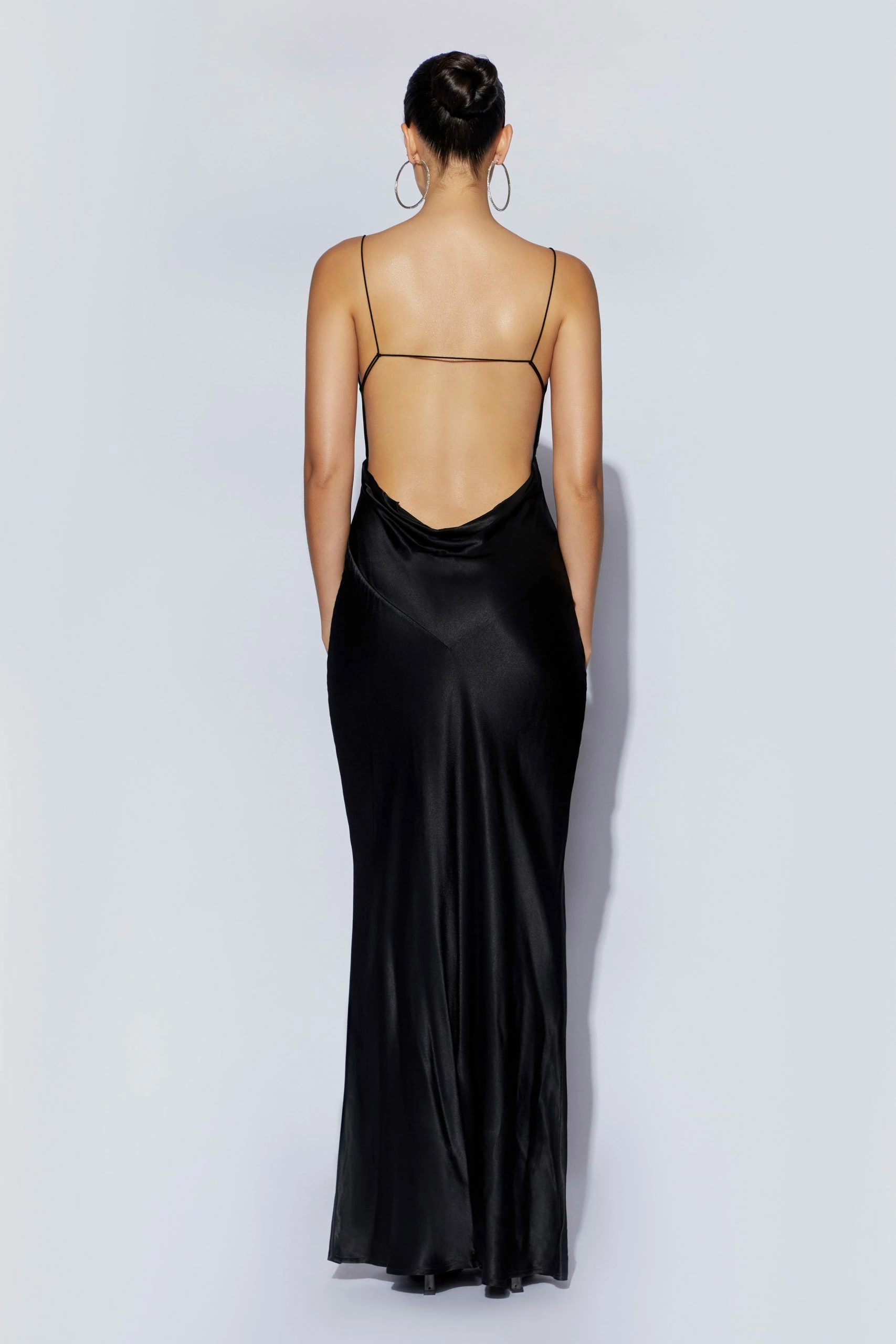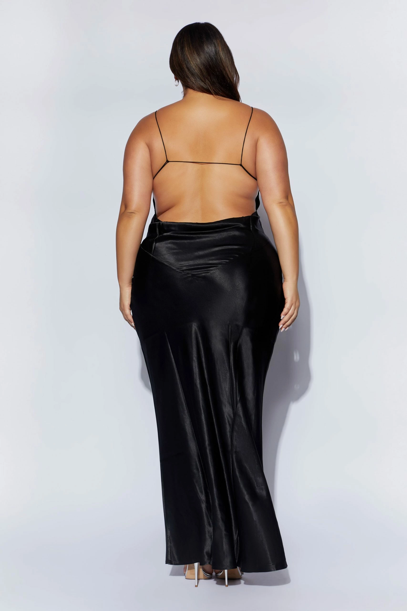 SADIE’s natural beauty shines. With a long, raw hem skirt that pools at the feet and a loose back cut that dips and curls around the waist, Sadie is as alluring and enthralling as free-flowing water. With her by your side, you can’t help but radiate indisputable charm. Balance her flow with a solid, more grounded accessory like our Caitlin Diamante Rope Heels.