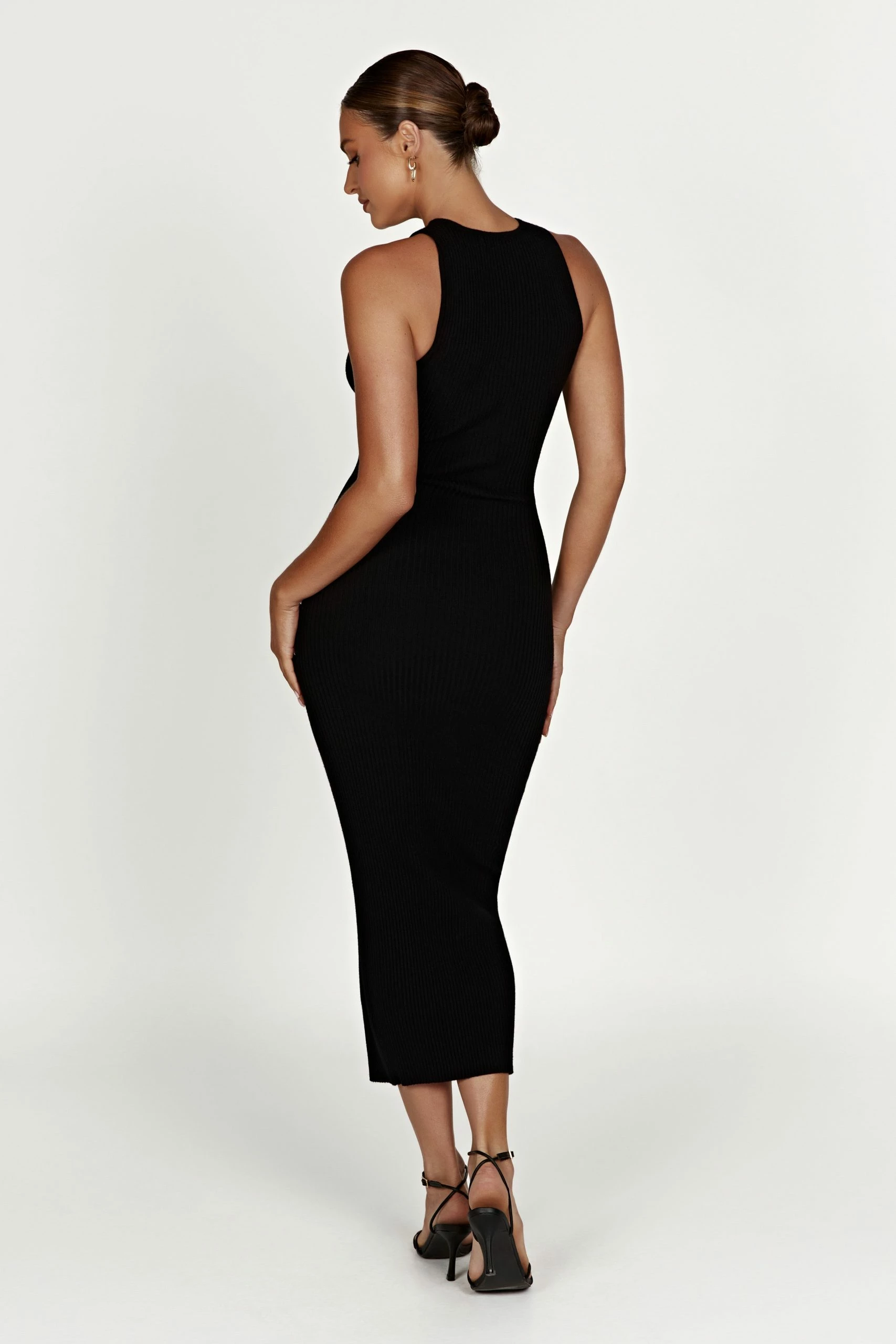 Exude understated elegance in SIENNA. Offering endless versatility, Sienna is crafted from our signature ribbed knit fabrication that is both form-fitting and soft to the touch. Designed to take you from AM to PM with ease, she features a timeless high neckline and racerback finish in a bodycon silhouette. Style with gold accessories for the perfect finishing touch.