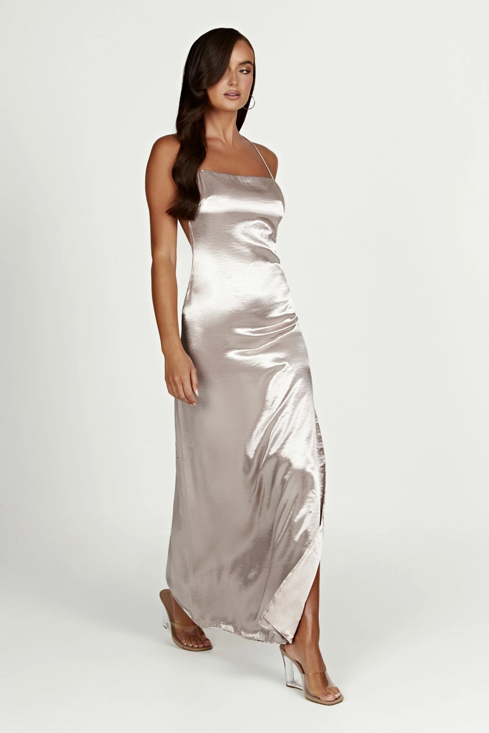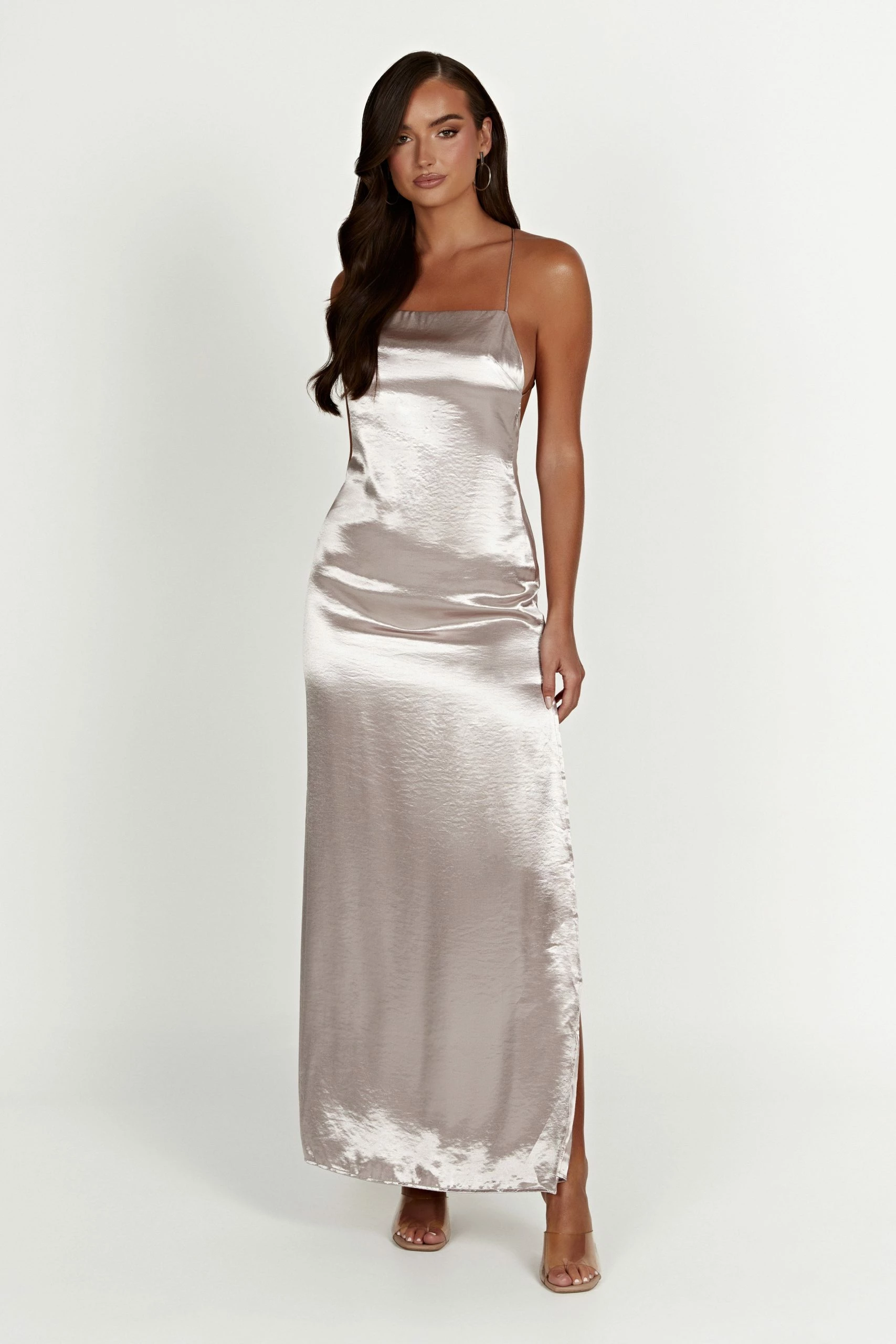 The WHITNEY has been designed to be a strikingly beautiful, wet-look dress that is fully lined with a hint of shine that flows along the full length of your body as you move. The low back, paired with criss-cross straps that splay over your shoulder creates a sophisticated look for your next special occasion. Pair with your favourite heels to take her from day to night.