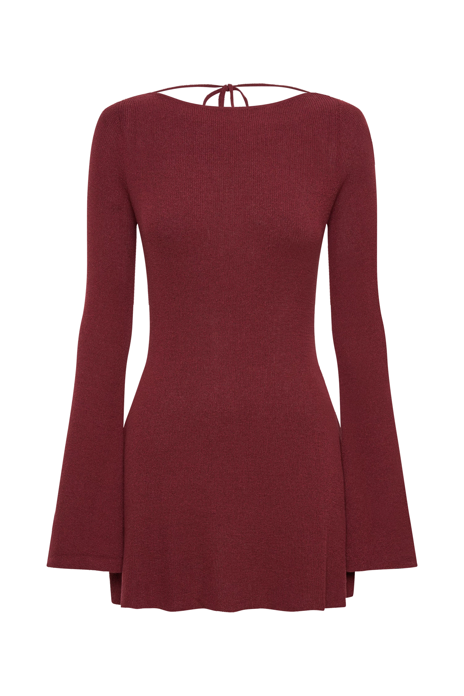 The ZAHRA Long Sleeve Open Back Mini Knit Dress is casual elegance wrapped in comfy cotton blend and long, fluted sleeves. A closed, straight-cut neckline lengthens your torso and accentuates the shape of your shoulders. MESHKI’s custom blend of cotton, acrylic, and nylon fabric keeps you feeling comfortably cool whilst perfectly framing your figure. The raw hem skirt that falls well above the knees paired with long fluted sleeves creates an airy, romantic silhouette. ZAHRA is a definite must-have for important events. Pair her with our heels to further accentuate your calves.